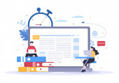 Content Writer or Journalist Kontekst Wektor Ilustracja dla Copy Writing, Badania, Rozwój Pomysł i powieść lub scenariusz książki w stylu płaskim