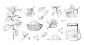 Ręcznie malowana żurawina. Rysunek borówki i jeżyny. Izolowane elementy botaniczne. Dziki leśny roślina z kwaśny jagoda. Witamina wegetariańskie jedzenie rysunek. Zestawy borówkowe wektorowe