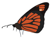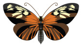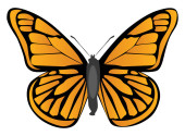 Pomarańczowy motyl, ilustracja, wektor na białym tle.