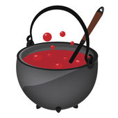 Duży kocioł z różowym płynem w środku, ilustracja, wektor na białym tle.