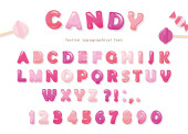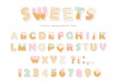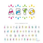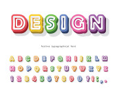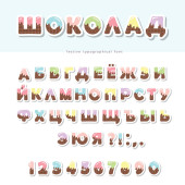 Kreskówkowe kolorowe czcionki dla dzieci. Cyrylica Jasny alfabet. Papier wycięty. Na plakaty, banery, kartki urodzinowe. Wektor