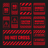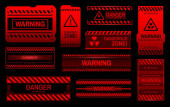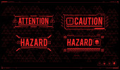 Układ koncepcyjny z elementami HUD do druku i Internetu. Listy z futurystycznymi elementami interfejsu użytkownika. Strefa zagrożenia HUD. znaki ostrzegawcze i ostrzegawcze.