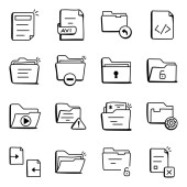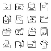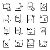wektorowa ilustracja ikon seo i web. zbiór plików i symboli zapasów dokumentów do prezentacji.