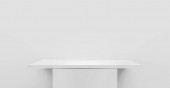 Biała, pusta półka na książki na ścianie. Pojedyncza półka na białym tle z cieniem