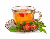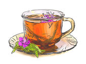 kwiaty lipy i filiżankę herbaty. Ilustracja wektorowa.