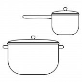 Zdjęcie "Zestaw narzędzi kuchennych różnych naczynia, zestaw sztućców, miski, potholders, fartuchy, noże, garnki i patelnie zarys prosty minimalistyczny płaski wzór wektor ikony ilustracji izolowane na białym tle" może być wykorzystywane do celów osobistych i komercyjnych zgodnie z warunkami zakupionej licencji Royalty-free. Obraz jest dostępny do pobrania w jakości wysokiej rozdzielczości do 5760x3840.