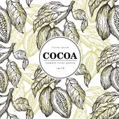 Wzór banera w kolorze kakao. Czekoladowe retro kakaowe tło fasoli. Wektor ręcznie rysowane ilustracji. Ilustracja stylu vintage.