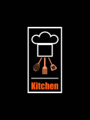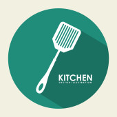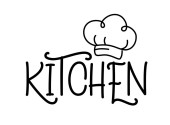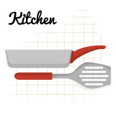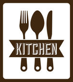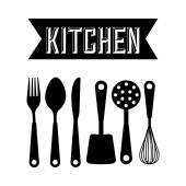 Zestaw narzędzi kuchennych dwóch skrzyżowanych szpatułek i ręcznie rysowane słowo kuchnia logo zarys prosty minimalistyczny płaski design wektor ikony ilustracja izolowane na białym tle