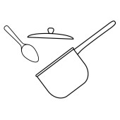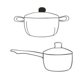 Zestaw narzędzi kuchennych długi uchwyt rondel i kontur garnek prosty minimalistyczny płaski design wektor ikony ilustracja izolowane na białym tle