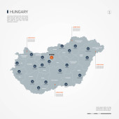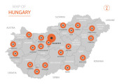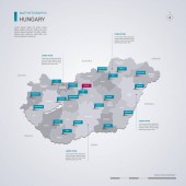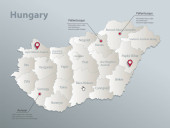 Mapa Węgier, poszczególne regiony z nazwami, Infografiki i ikony wektor