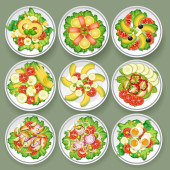 Zdrowy posiłek ze świeżą sałatką warzywną ilustracja