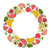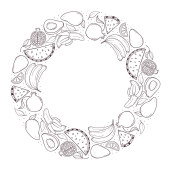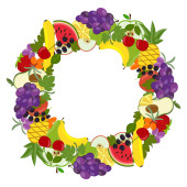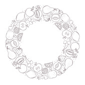 Ręcznie rysowane owoce i jagody wieniec izolowane na białym tle