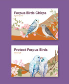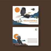 Szablon pocztówki z koncepcją rogatego ptaka, akwarela
