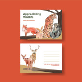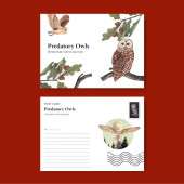 Szablon pocztówki z koncepcją rogatego ptaka, akwarela
