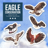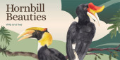 Szablon plakatu z koncepcją rogatego ptaka, akwarela