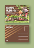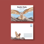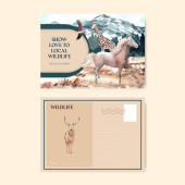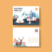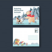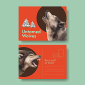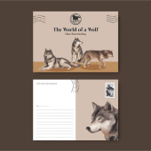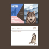 Szablon pocztówki z wilkiem w koncepcji zimowej, akwarela