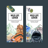 Szablon pocztówki z wilkiem w koncepcji zimowej, akwarela