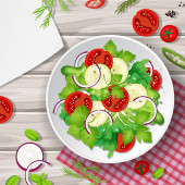 Zdrowy posiłek ze świeżą sałatką warzywną ilustracja