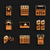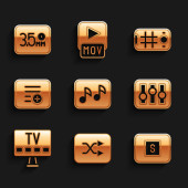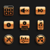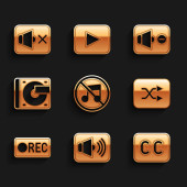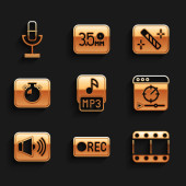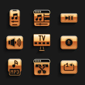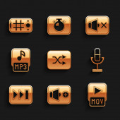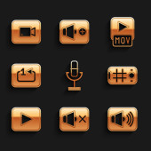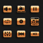 Ustaw korektor muzyki, Powtórz przycisk, Przewiń do przodu, Nagrywarka dźwięku, Stop mediów, edycja wideo, plik MP3 i ikona ustawień. Wektor