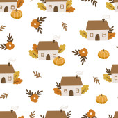 Zdjęcie "Jesień Jesień Płynny wzór z ręcznie rysowane wektor dyni i liści clipart w stylu skandynawskim. Papier cyfrowy, bezszwowa tekstura tła do tkanin, tkanin, tapet" może być wykorzystywane do celów osobistych i komercyjnych zgodnie z warunkami zakupionej licencji Royalty-free. Obraz jest dostępny do pobrania w jakości wysokiej rozdzielczości do 5760x3840.
