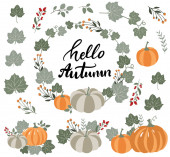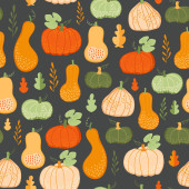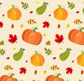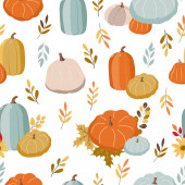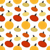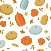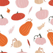 Jesień Jesień Płynny wzór z ręcznie rysowane wektor dyni i liści clipart w stylu skandynawskim. Papier cyfrowy, bezszwowa tekstura tła do tkanin, tkanin, tapet