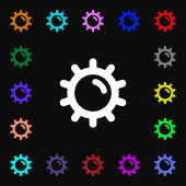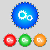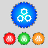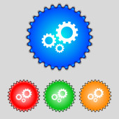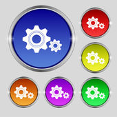 ikonę znak ząb ustawień. Inżynieria sprzętu mechanizmu symbol. zestaw kolorowych przycisków. wektor