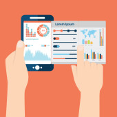 retro wektor zestaw plansza elementy dokumentów i raportów z trzy urządzenia telefon komórkowy ekran dotykowy