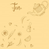 Ręcznie rysowane dzbanek herbaty na białym tle, ilustracja wektor.