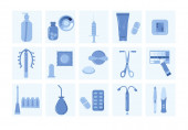 Szpitalny sprzęt diagnostyczny. Urządzenia medyczne, system opieki zdrowotnej, monitoring. Tomograf, skaner, rentgen, fotel dentystyczny, mammografia, ginekologia transfuzji krwi, fluorografia, wektor wózka inwalidzkiego