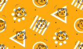 Zdjęcie "Płynny wzór z tygrysami. Projekt ikony. Elementy szablonu" może być wykorzystywane do celów osobistych i komercyjnych zgodnie z warunkami zakupionej licencji Royalty-free. Obraz jest dostępny do pobrania w jakości wysokiej rozdzielczości do 5760x3840.