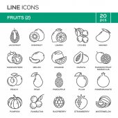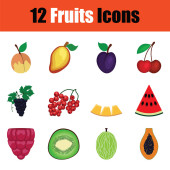 owoce zestaw ikon. kolorowy szablon do gotowania, restauracja menu i wegetariańskie jedzenie