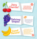zestaw bannerów owoce. kolorowy szablon do gotowania, restauracja menu i wegetariańskie jedzenie