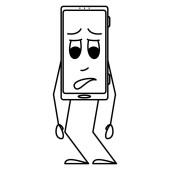 Smartfon z emocjami na ekranie. Stylizowany smartfon stoi i czeka. Oczekiwanie, niecierpliwość, gniew, niezadowolenie. Ikona wektora, zarys, kreskówka, izolowane