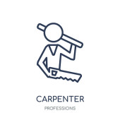 Ikona stolarza. Cienki liniowy kontur stolarski odizolowany na białym tle. Linia wektor stolarz znak, symbol sieci web i mobile