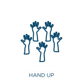 Zdjęcie "Podnieś ikonę ręki. Cienki liniowy podniesienie ręka zarys ikona izolowana na białym tle. Linia wektor podnieść znak strony, symbol sieci web i mobile" może być wykorzystywane do celów osobistych i komercyjnych zgodnie z warunkami zakupionej licencji Royalty-free. Obraz jest dostępny do pobrania w jakości wysokiej rozdzielczości do 5760x3840.