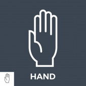 Podnieś ikonę ręki. Cienki liniowy podniesienie ręka zarys ikona izolowana na białym tle. Linia wektor podnieść znak strony, symbol sieci web i mobile