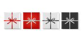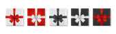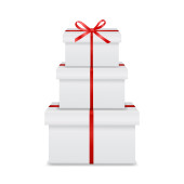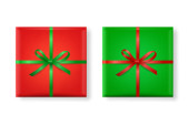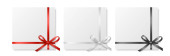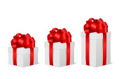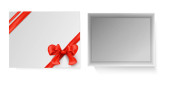 Vector 3d realistyczne zamknięte, otwarty papier White Christmas Gift Box, Red Bow izolowane. Nowy Rok, Boże Narodzenie, Walentynki lub Rocznica Concept. Wzór Szablon świąteczny Present Packing. Widok z góry