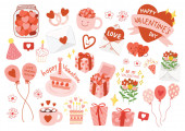 Wektor słodkie przedmioty i elementy dla Walentynki karty. kolekcja wektorów