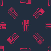 White line Crossed knife and fork icon isolated on white background. Cutlery symbol. Red circle button. Vector