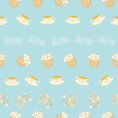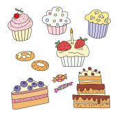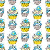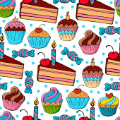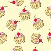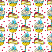 Płynny wzór ciasta. Ręcznie rysowane tło z tortami variuos na białym.