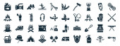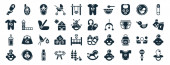 zestaw 40 wypełnionych ikon do szycia w stylu glifowym, takich jak nożyczki do szycia, odzież, szycie szpilki, mierzenie, obręcz haftowa, krzywa francuska, ikony jednostek szycia izolowane na białym tle