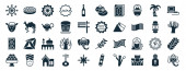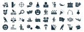 zestaw 40 wypełnionych stron internetowych ikon w stylu glifowym, takich jak uroczystość, duży głośnik, kapelusz kreatora na głowie, kapelusz kreatora, zdjęcia urodzin, maski teatralne, klaskanie ikony dłoni izolowane na białym tle