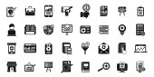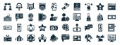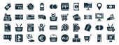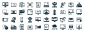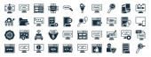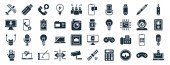 zestaw 40 wypełnionych technologią ikon internetowych w stylu glifowym, takich jak latarnia, wtyczka zasilania, arkusz kalkulacyjny, wakacje, mysz bezprzewodowa, laptop z sercem, ikony LED lampy izolowane na białym tle