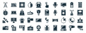 Zdjęcie "zestaw 40 wypełnionych technologią ikon internetowych w stylu glifowym, takich jak latarnia, wtyczka zasilania, arkusz kalkulacyjny, wakacje, mysz bezprzewodowa, laptop z sercem, ikony LED lampy izolowane na białym tle" może być wykorzystywane do celów osobistych i komercyjnych zgodnie z warunkami zakupionej licencji Royalty-free. Obraz jest dostępny do pobrania w jakości wysokiej rozdzielczości do 5760x3840.