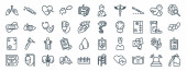 zestaw 40 wypełnionych medycznych ikon internetowych w stylu glifowym, takich jak stetoskop medyczny bije serce narzędzie kontroli, narzędzie skali do kontroli masy ciała stojąc na nim, phary, narzędzie kontroli ciśnienia krwi, okulary