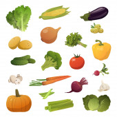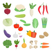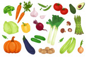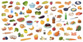 Zestaw 21 kawałków różnych warzyw na białym tle - ilustracja