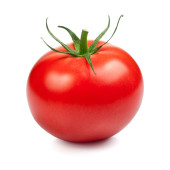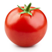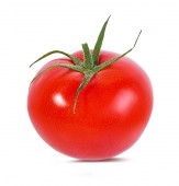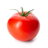 Świeże czerwone pomidory z zieloną łodygą na białym tle