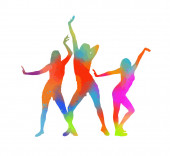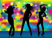 Sylwetka dziewczyn tańczących w dyskotece. Ilustracja wektora