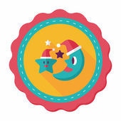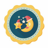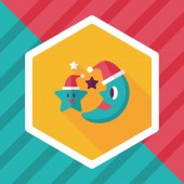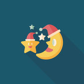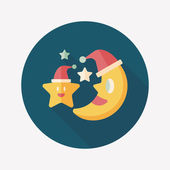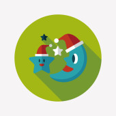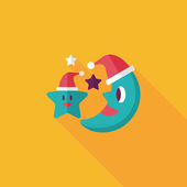 Księżyc i gwiazda z Boże Narodzenie kapelusz płaski ikona z długim cieniem, eps