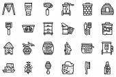 Zdjęcie "Ikony nektaru ustawiają wektor zarysu. Pszczoła propolijska" może być wykorzystywane do celów osobistych i komercyjnych zgodnie z warunkami zakupionej licencji Royalty-free. Obraz jest dostępny do pobrania w jakości wysokiej rozdzielczości do 5760x3840.
